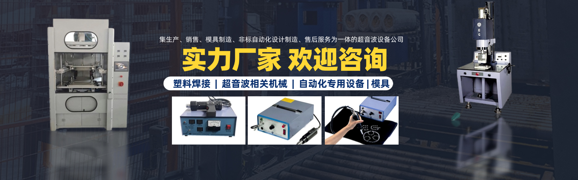 廈門萇榮機械設備有限公司是長榮超音波集團在福建設立的公司,我們主要供應臺灣長榮系列超聲波機器。 長榮超音波集團成立于1991年,麾下的兩個生產(chǎn)基地,分別建立在臺灣和上海,公司主要專業(yè)設計指導各種塑料焊接、超音波相關機械、模具及以本業(yè)為核心結束各類自動化專用設備。 廈門萇榮機械設備有限公司是集生產(chǎn)、銷售、模具制造、非標自動化設計制造、售后服務為一體的超音波設備福建公司,集團公司及本公司成立二十余年來,設備技術日趨完善,并通過ISO-900認證,在超聲波行業(yè)有良好的信譽。 目前我公司產(chǎn)品系列有: 1)超聲波塑膠熔接設備及模具; 2)高精度自動追頻超聲波焊接機; 3)超聲波縫制機系列; 4)超音波清洗系列; 5)熱板式焊接機系列及模具; 6)汽車零部件生產(chǎn)設備; 7)各種非標專用機設備設計與制造。